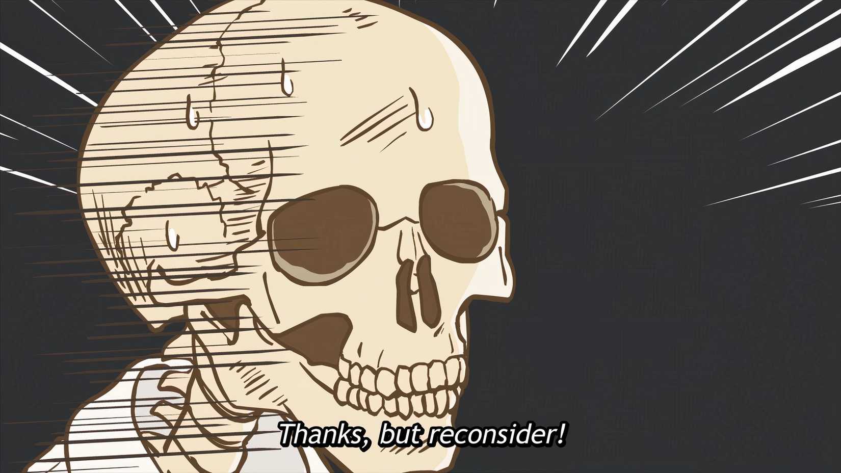 Each episode of Skull-face Bookseller Honda-san is brief, lasting only 11 minutes. The animation style is distinctive – it resembles a hand-drawn manga rather than a typical animated series. And, the show is full of humor and relatable, sometimes salty, commentary for anyone who’s ever worked in retail.