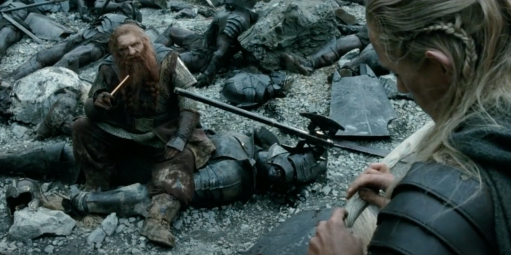 In the aftermath of the battle, Gimli unexpectedly mentions the “nervous system” when talking about an axe lodged in an orc’s head. This is a surprisingly sophisticated idea coming from a character in the Lord of the Rings films who is generally depicted as rough, funny, and more focused on drinking than understanding anatomy.