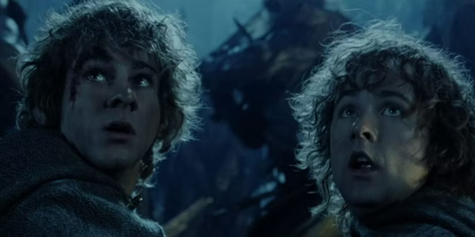 When Pippin is captured by the Uruk-hai, there’s a brief confusing moment. One second, his hands seem unbound as he escapes being run over by a horse, and the very next, Merry is desperately trying to free him while they’re hiding in the woods.