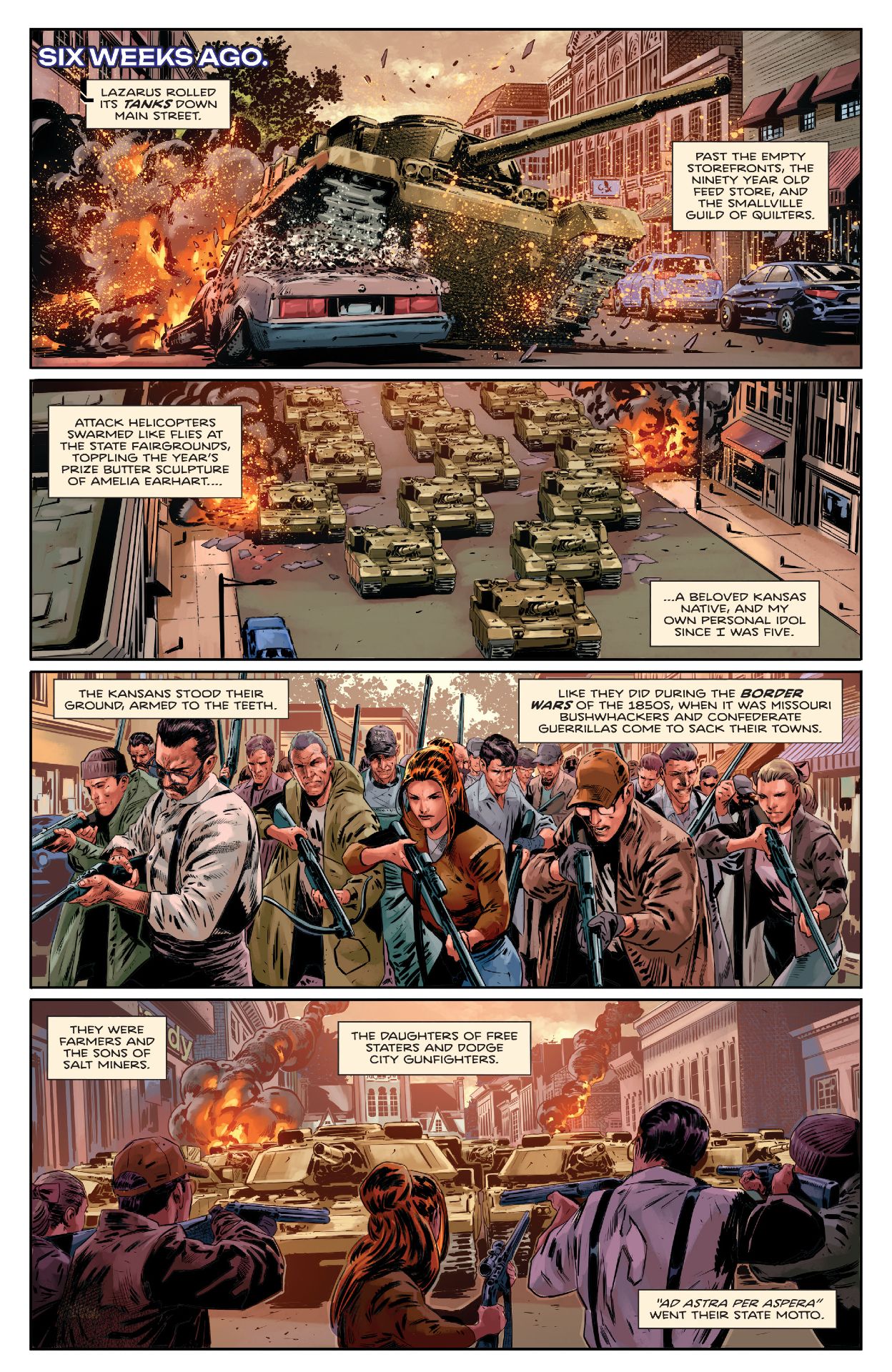 A preview of DC Comics’ Absolute Superman #13 (from Jason Aaron, Rafa Sandoval, Ulises Arreola, and Becca Carey) shows Superman battling a massive army of Peacemakers from the Lazarus Corporation in the middle of the Battle of Kansas. While the Lazarus Corporation throws soldiers, tanks, and drones at him, they can’t overcome the incredible power of Superman’s suit and its AI, Sol. Sol not only helps Superman fight off the attackers, but also allows him to create a new, crimson Fortress of Solitude rising from the ground, effectively creating a boundary the Peacemakers can’t cross.