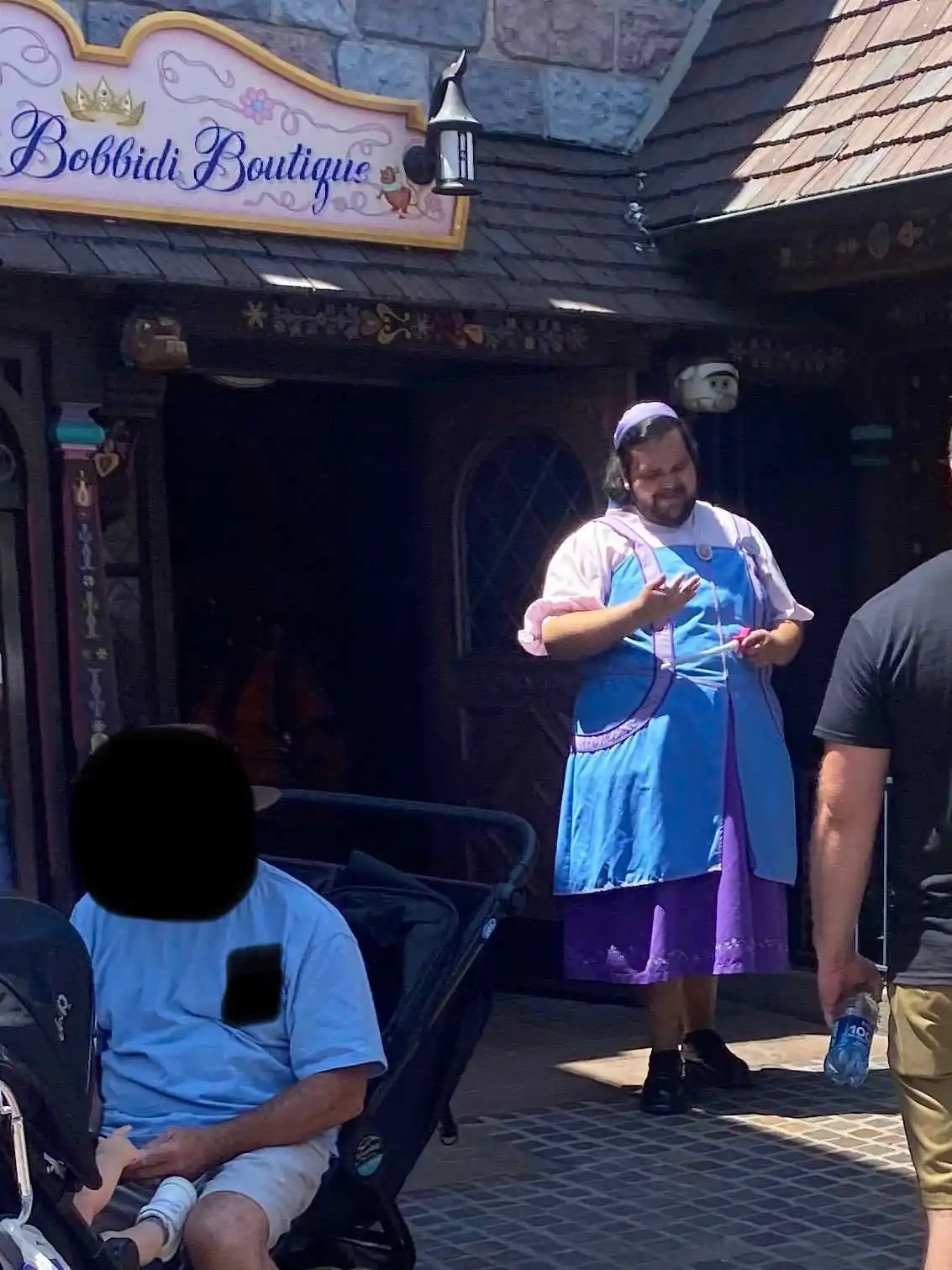 In August 2023, someone on X (formerly Twitter) shared a picture of a male Disney employee with facial hair who was costumed as a Fairy Godmother Apprentice at a Disneyland store.