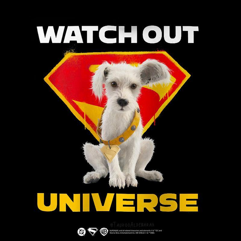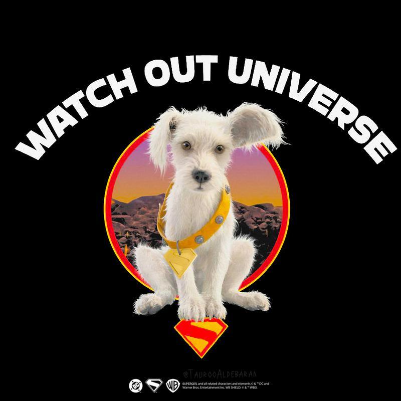 All of these posters feature the new slogan, “Watch Out Universe,” highlighting both Supergirl’s adventures across the galaxy and the dangers of interfering with Krypto.