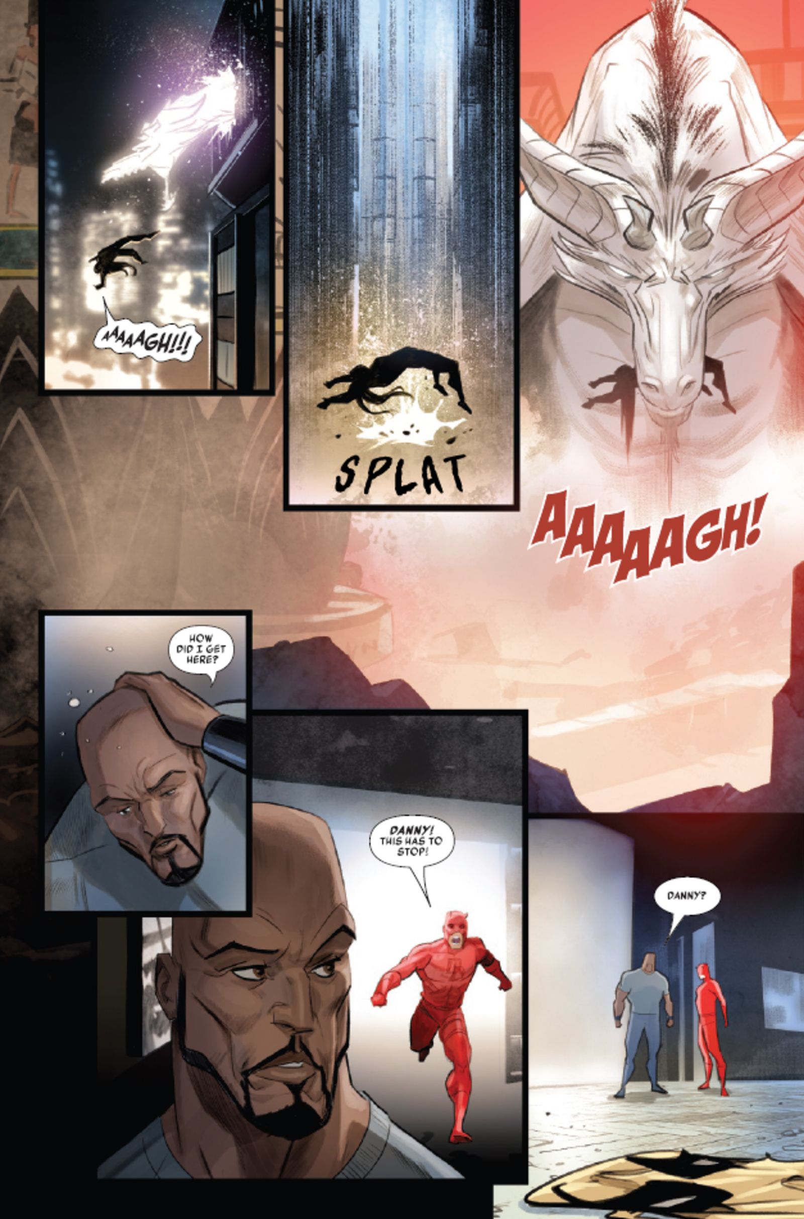 In issue #4 of The Undead Iron Fist (from Jason Loo, Fran Galán, Jim Campbell, and Travis Lanham), Danny Rand—recently back from the dead—battles the villainous Quan Yaozu and his demonic forces. Luckily, Danny now has the power of T’an-Long, a powerful spectral dragon that Quan Yaozu previously killed. Along with his abilities as the Ghost Fist of Osiris, T’an-Long gives Danny the edge he needs to win. Afterward, the pair return to their new home in the Underworld, ready to answer the call if they’re needed again.