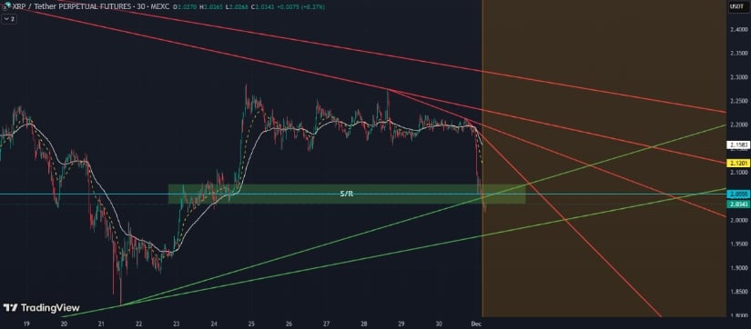 После волатильного ноября, XRP стабилизировался в начале декабря, с улучшением условий ликвидности и повышением видимости активности, связанной с ETF. Текущая цена XRP восстановилась выше $2 после заметной коррекции в прошлом месяце, что указывает на возможное долгосрочное накопление, несмотря на общее нежелание рисковать на рынке. 🤯 Чудо? Или просто своевременный ралли? Знает только рынок – и он не разговаривает. 🤐
