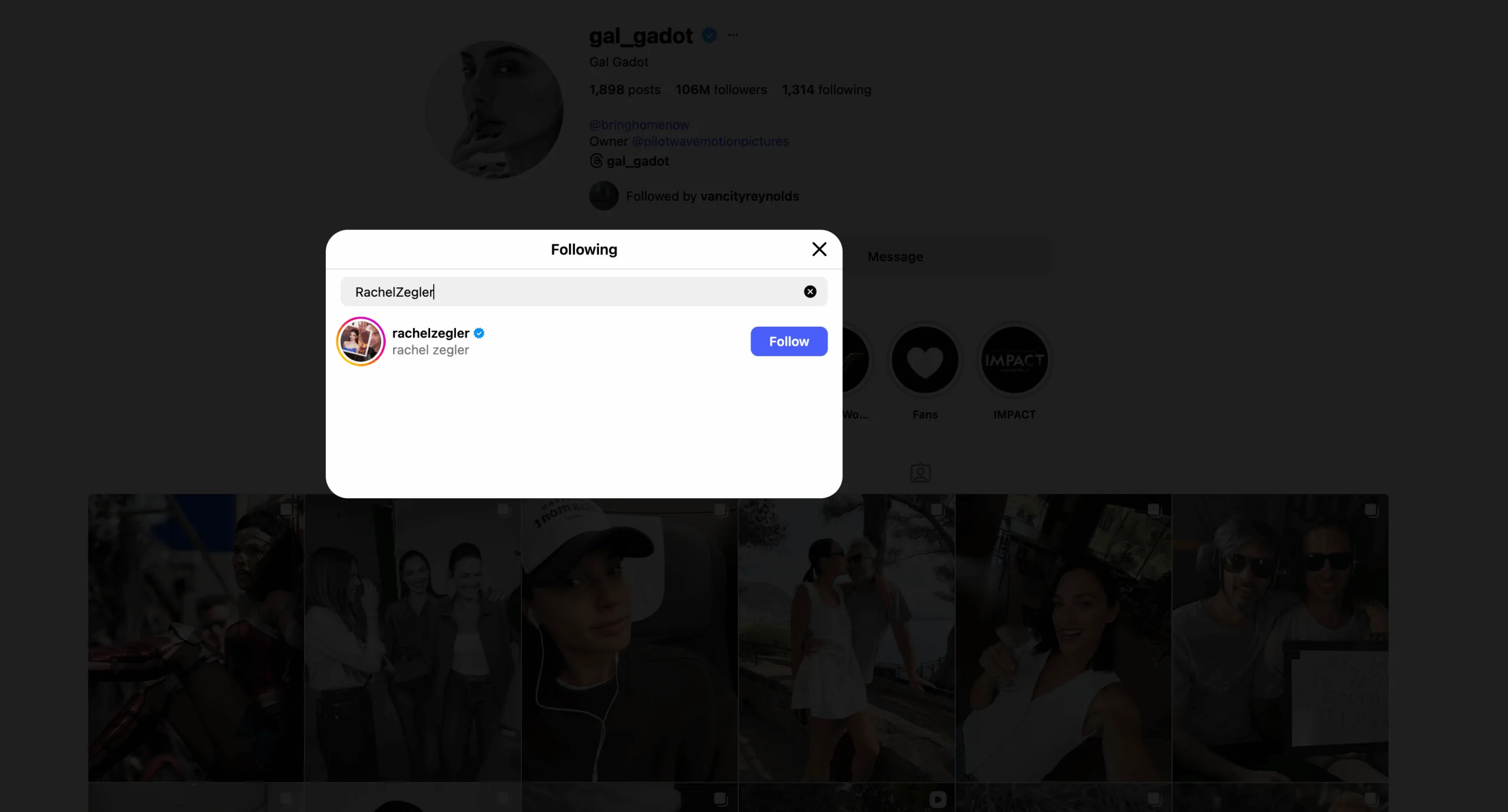 It should be noted that Gadot, as of this writing, still follows Zegler.