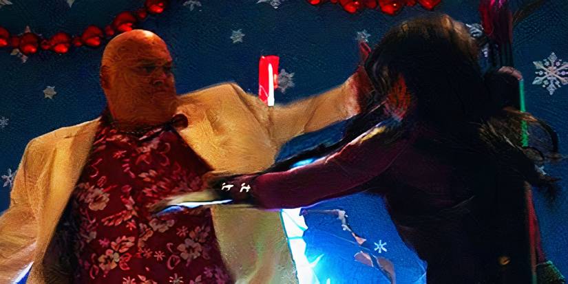 Kate and Fisk clashed, with Kate firing arrows that hit him squarely in the chest. However, Fisk simply brushed them off without reacting. He then landed several punches on Kate, sending her tumbling. Although Kate managed to briefly gain the advantage by detonating arrows under Fisk’s feet, he ultimately recovered and walked away unharmed.